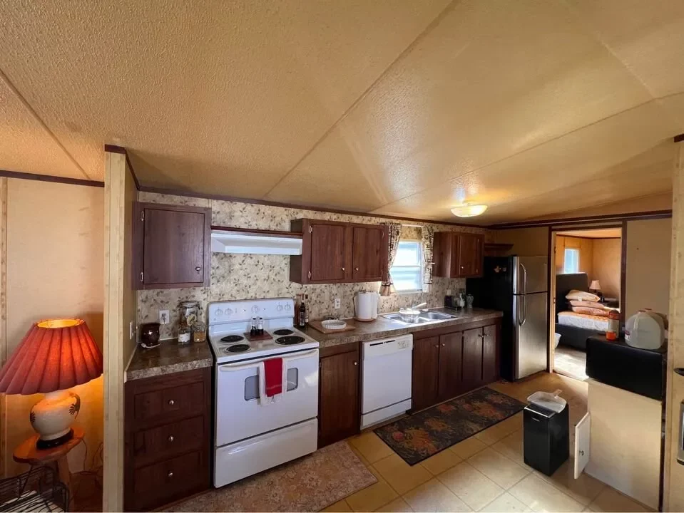 This is a 3/2, 1100 sqft built in 2007 mobile home. Will come with all white & stainless steel kitchen appliances, a washer & dryer, ample kitchen cabinets, newer AC & Heating, water heater. Great outdoor space, 12×12 shed, 2-space parking. This is a well cared for 1 owner home will not be disappointed. You need to know (new flooring and painting starting next week).