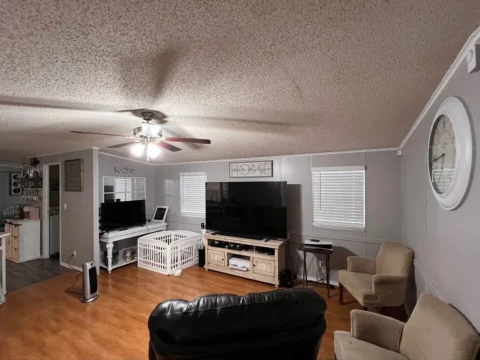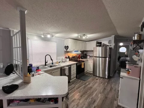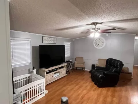 This is a 3/2, 1352 sqft mobile home on a leased lot. Ways to buy is cash at $44,995 OBO or seller financing at a higher price with $15k to get in. Must be approved to live in the community by management.
