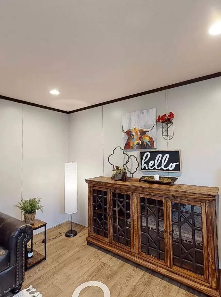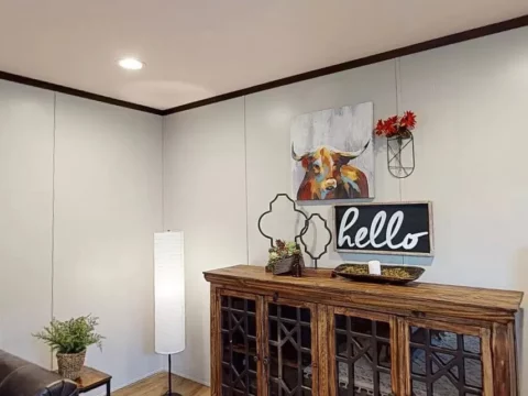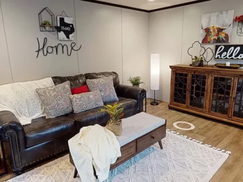 Home is for SALE ONLY $49,995 cash or we can connect you with a CHATTEL LOAN lender. A down payment of 5%-20% depends on credit. GUESSTIMATE O.A.C.20yr term(Chattel loan) WITH 5% DOWN($3,250) loan purchase – less than ~$809+- per month P.I.T.I. on mortgage & $484+- lot lease total with both is about $1293+- month.