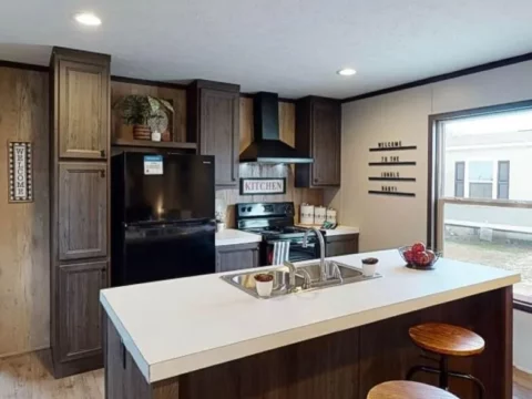 This is a 3/2, 1216 sqft built in 2022 single-wide mobile home set in a community park. Comes with all kitchen appliances and ample cabinet space.