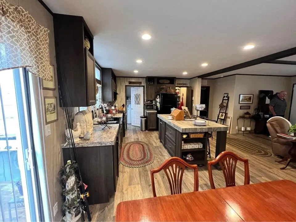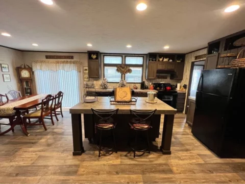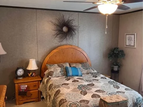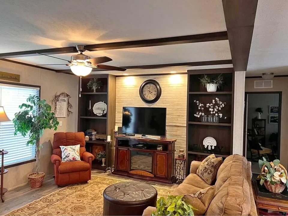 This is a 3/2, 1352 sqft built in 2018 double-wide mobile home. The home is move-in ready with all black and stainless steel kitchen appliances. Throughout the home, vinyl wood flooring graces the interior, accompanied by 2″ blinds, double-pane windows, crown molding, a fireplace, and ceiling fans. The dwelling also features a 10×12 covered patio and a 12×12 storage shed available at an additional cost. Accommodating up to 6 vehicles, the property showcases an energy-efficient design.